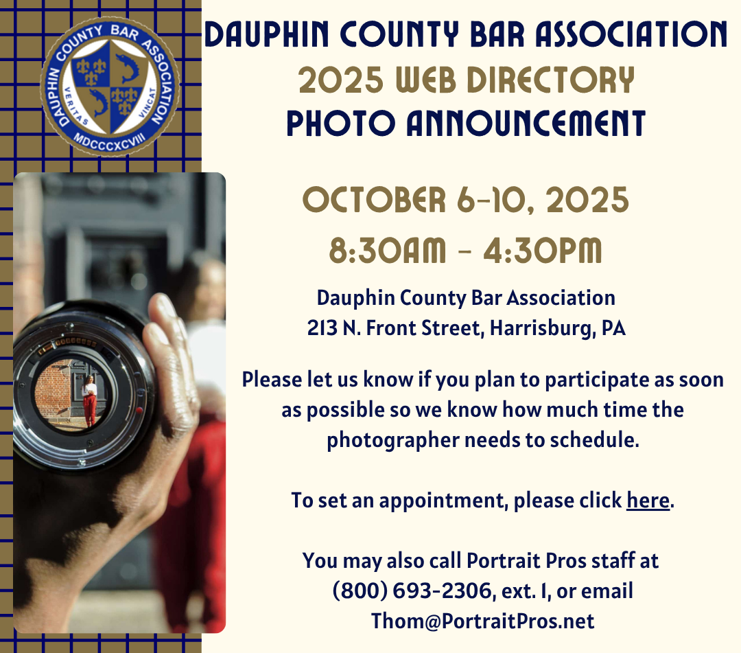 © 2015-2025 Dauphin County Bar Association | Professional Organization for Lawyers in Dauphin County, Pennsylvania (PA).