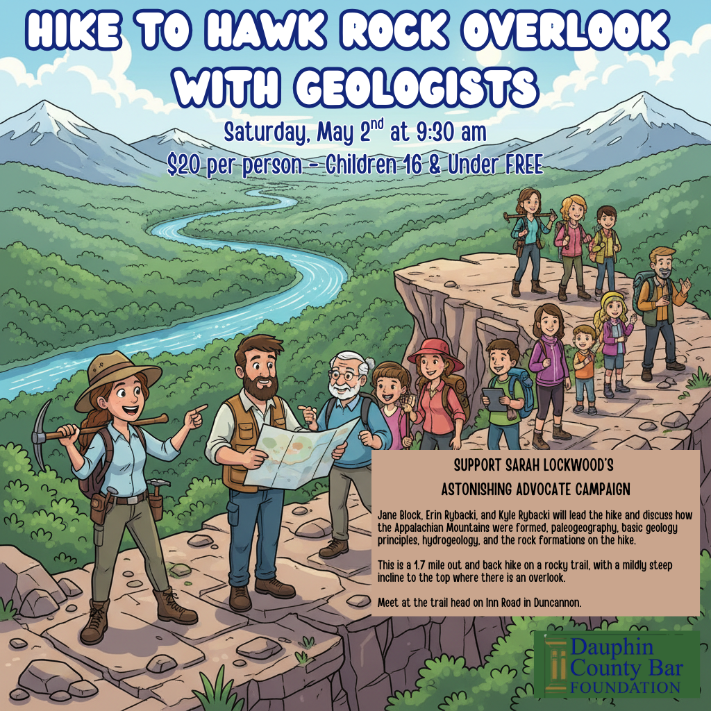 Come hike with Jane Block, Erin Rybacki, and Kyle Rybacki, three local geologists. During the hike, they will discuss how the Appalachian Mountains were formed, paleogeography, basic geology principles, hydrogeology, and they will discuss the rock formations specifically where we are hiking.