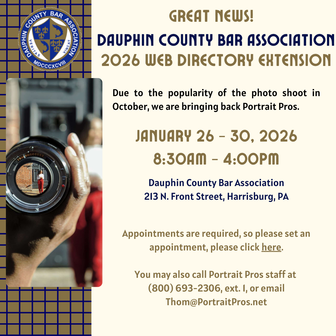Portrait sessions are by appointment with no waiting and only take approximately 15 minutes. You will be able to view proofs immediately and select your photo for the bar association’s use.